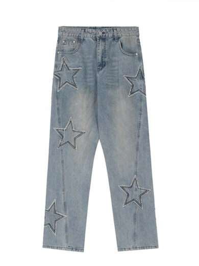 Street Trend Patch Pentagram Cat Whisker Embroidered Jeans Men